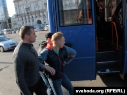 18:55 Пачаліся затрыманьні, затрымліваюць людзі ў цывільным. У сіні аўтобус без нумароў і апазнавальных знакаў, як паведамляюць нашы карэспандэнты, пацягнулі 5-10 чалавек. Першая машына ад’ехала. На яе месца прыехалі тры іншыя.