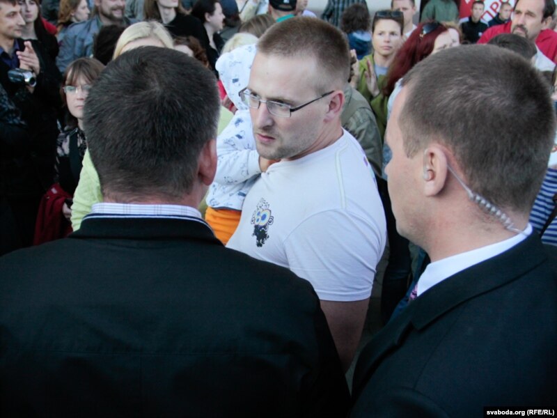 12:04 Ігар Коктыш піша: «У натоўпе вялікая колькасьць у цывільным; перамовы па рацыі: «Заўважыў мітусьлівых, будзем браць».