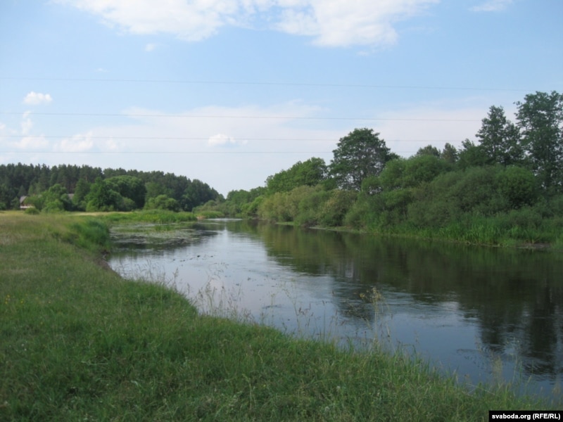 На пакручастым пагорку шэрагі платоў і хатаў. За расквечаным поплавам імчыць хуткая плынь легендарнай, самай паэтычнай ракі.