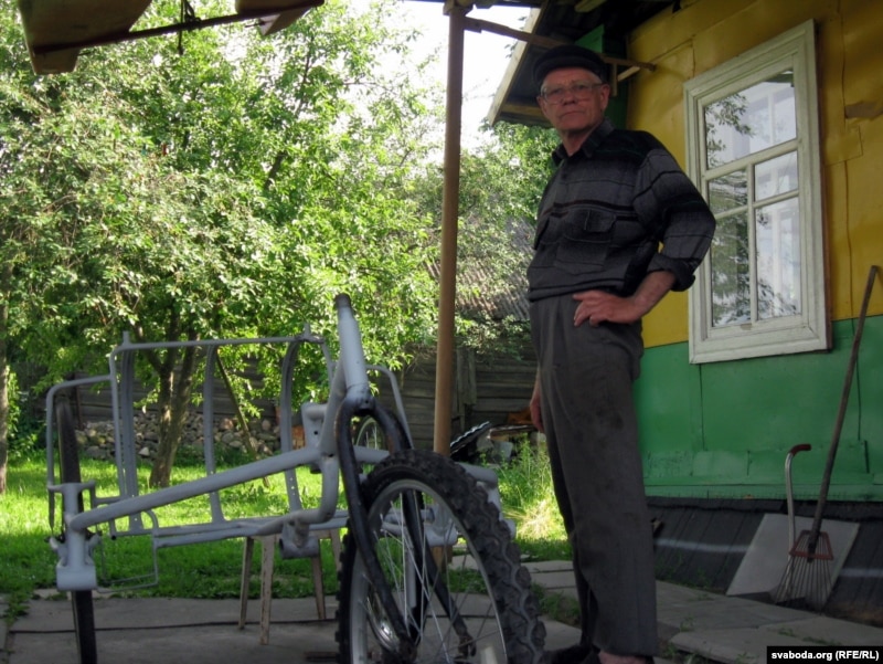 У Вязьзі мне пашанцавала пазнаёміцца з сапраўдным вясковым дзіваком. Пра такіх з замілаваньнем пісаў Васілій Шукшын. 70-гадовы Якаў Ядлінскі зьбірае ровары. Не калекцыянуе, а менавіта прыдумляе. Я засьпеў былога калгаснага шафёра за працай над вэлямабілем.