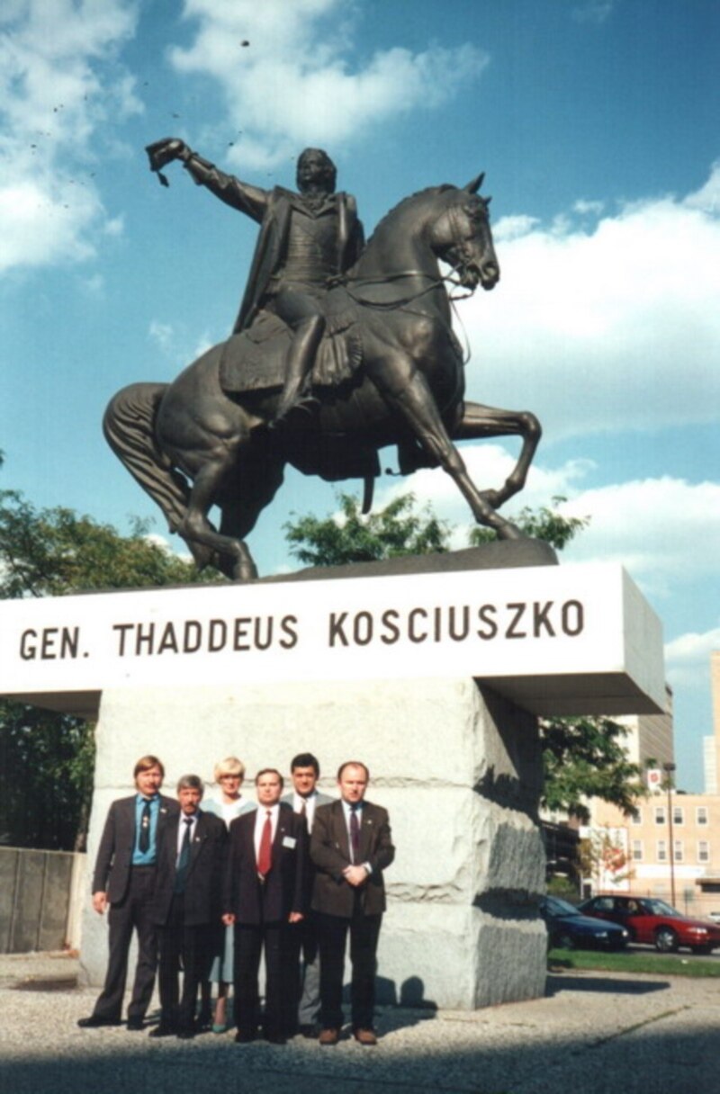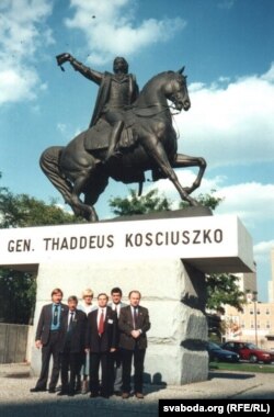 Група дэпутатаў Вярхоўнага Савету ў Дэтройце, штат Мічыган. Зьлева направа: Мікола Мацкевіч, Барыс Гюнтэр, Галіна Сямдзянава, Сяргей Антончык, Аляксандар Паруль, Лявон Дзейка. Верасень 1994 г.