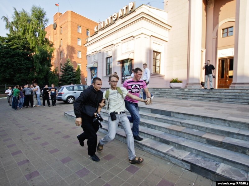 «23 чалавекі, якія былі затрыманыя 7 ліпеня — іх папярэдзілі працадаўцы, каб яны сёньня не прыходзілі. Інакш у іх будуць праблемы. Аж да звальненьня. Да працадаўцаў прыходзілі ці то супрацоўнікі КДБ, то міліцыі, і празь іх спрабавалі неяк паўплываць на рашэньні людзей — ісьці на плошчу ці не».