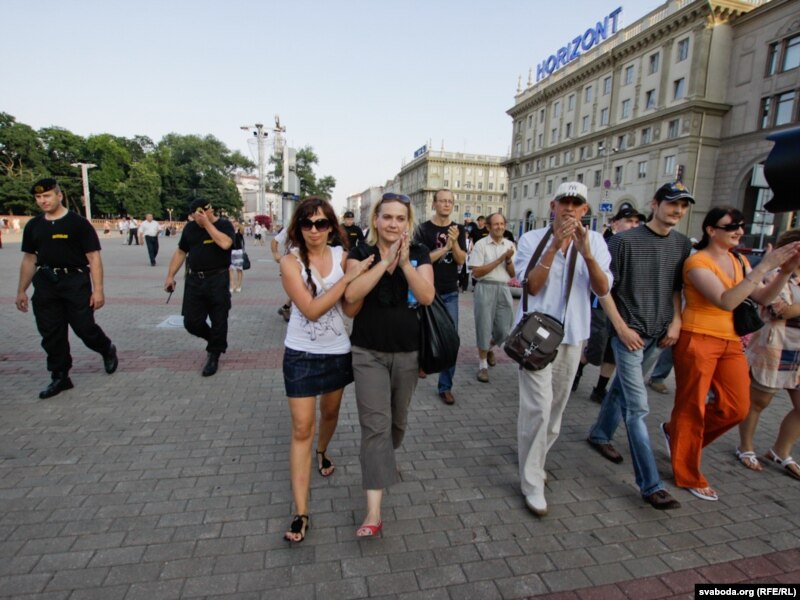 Ужо на другую акцыю на Кастрычніцкай плошчы ў Менску сабралася больш за 200 чалавек. Моладзь слухала сьпевы пад гітару і сама спрабавала сьпяваць. Тады супрацоўнікі спэцслужбаў толькі сачылі за акцыяй, і яна абышлася без затрыманьняў.