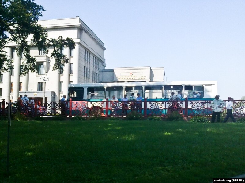 Каля Палацу прафсаюзаў стаяць агароджы. Таксама 6 мікрааўтобусаў зь людзьмі спартовага выгляду знаходзяцца за Палацам рэспублікі на вуліцы Энгельса і ў дварах.