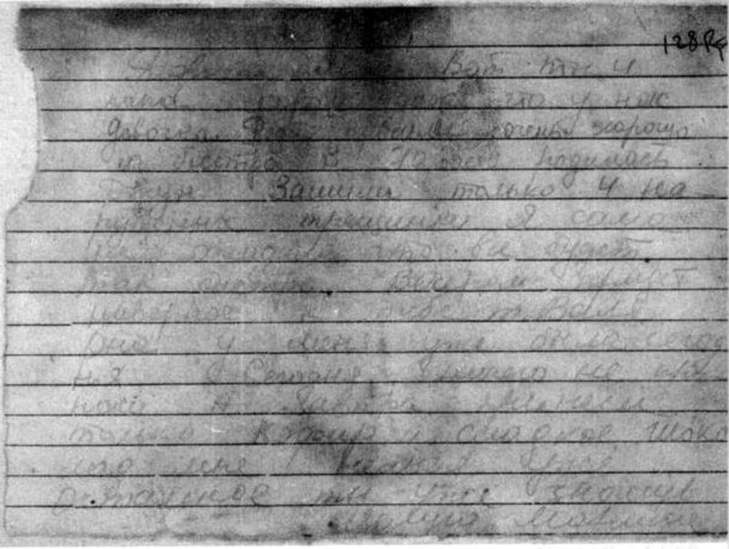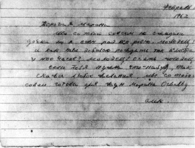 Алек, я стала так дрэнна выглядаць, што ты мяне не пазнаеш. Гэта таму, што я баюся, што Джун не бярэ грудзі. Таксама, тут не даюць паспаць колькі трэба – толькі з 2 да 5 раніцы. Не магу ўявіць, што буду рабіць дома. Алек, мне таксама пільна трэба 1 руб. 20 капеек. Урэшце, я не магу хадзіць бязь ліфчыка. Тут адной жанчыне купілі два, і яна прадала адзін мне. Мне трэба ёй заплаціць. Гэта ня дзеля прыгажосьці, а каб не застойвалася малако. Ніхто з вас нават ня думае прыносіць мне тое, што мне трэба. Усе толькі і робяць, што пытаюцца, што мне трэба. Ну, хопіць пра гэта, сканчаю.