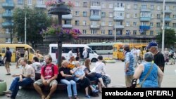 13.30 Некалькі дзесяткаў чалавек сядзяць на лавах каля цэнтральнага ўваходу на рынак. Яны паведамілі журналістам, што прыйшлі менавіта на заклік далучыцца да акцыі.