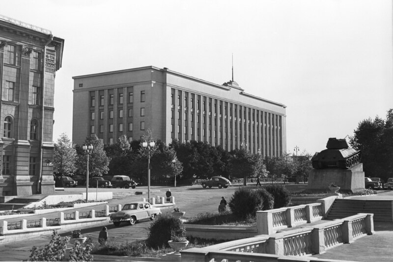 Васьміпавярховы жоўты будынак з мэталу і цэглы, прастакутнік, амаль без аляпаватых упрыгожаньняў, якія можна бачыць амаль на ўсіх гарадзкіх будынках. “Першы сакратар ЦК КП Беларусі” – такі важны тытул мае невысокі поўны мужчына, якому пад шэсьцьдзесят, К.Т. Мазураў. Яго рэдка можна пабачыць на вуліцы, разам зь сям’ёй ён займае вялікую васьміпакаёвую кватэру на апошнім паверсе дому на праспэкце Сталіна. Уваход у будынак ахоўвае днём і ноччу міліцыянэр у форме, які правярае пропускі і не пускае асобаў без дазволу. Мазураў кіруе і кантралюе ўсю дзейнасьць у рэспубліцы з паўнамоцтвамі, якіх ня мае ніводзін губэрнатар у ЗША, бо яго ўладу нельга абмежаваць судовымі пастановамі ці забаронамі, як гэта часта здараецца ў ЗША. Мазураў падначалены наўпрост Маскве і прэзыдыюму партыі на чале з Хрушчовым.
