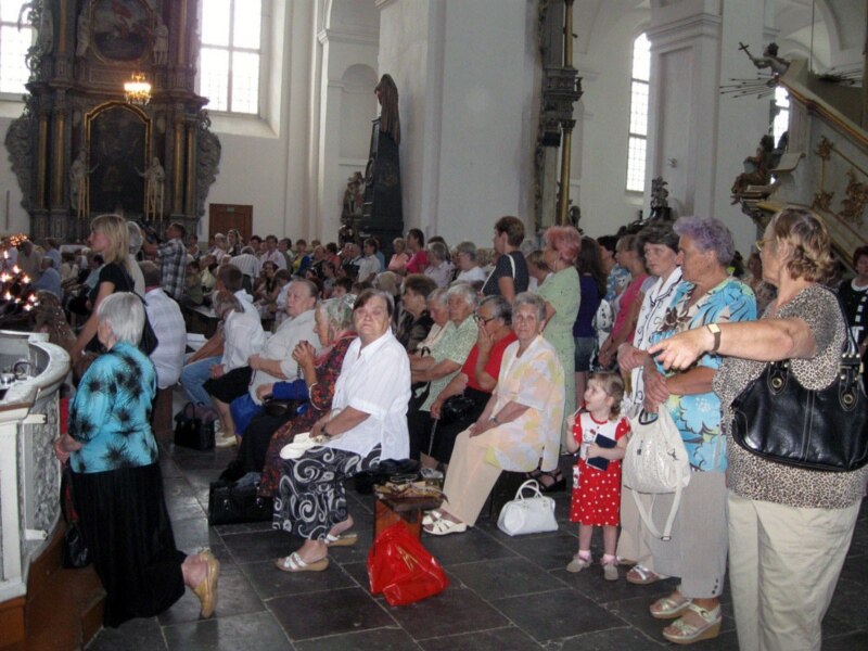 Побач з касьцёлам сустракаю вядомую гарадзенскую пісьменьніцу Дануту Бічэль, у яе таксама сьвеціцца твар ад радасьці.