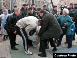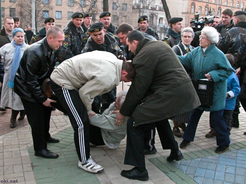 Затрыманьне Алеся Бяляцкага на Дзень Волі. Плошча Свабоды. 2004 г. Фота: vytoki.net