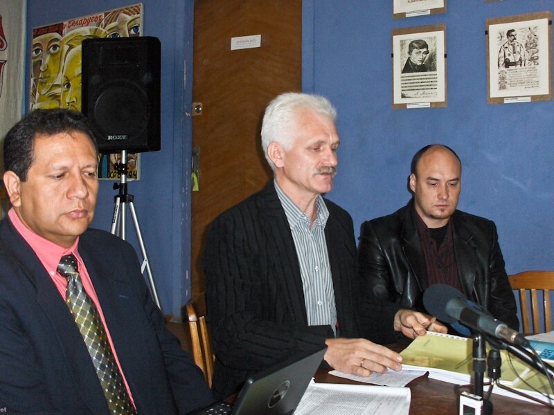 Прэзэнтацыя дакладу FIDH "Умовы ўтрыманьня пад вартай у Рэспубліцы Беларусь". 2008 г. Фота: vytoki.net
