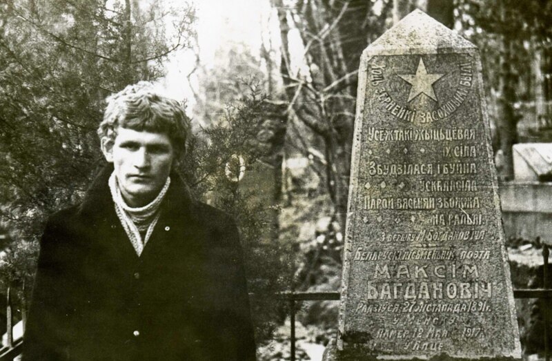 Алесь Бяляцкі на магіле М.Багдановіча. Ялта, 1980. Фота: vytoki.net