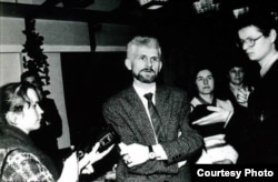 Прэзэнтацыя "Агляду парушэньня правоў чалавека" праваабарончага цэнтру "Вясна". 1999 г. Фота: vytoki.net
