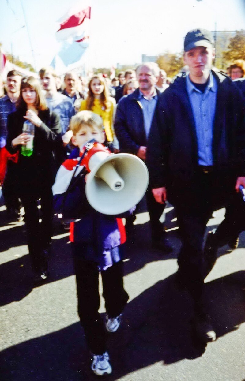 Алесь Бяляцкі: "Сын удзельнічае ва ўсіх сацыяльных акцыях. Дзякуй Богу, пакуль не затрымлівалі. "Наша ніва" зьмясьціла здымак, які потым пайшоў гуляць па сацыяльных сетках, з надпісам: "Гэты чувак першым спыніў сваю машыну на праспэкце".