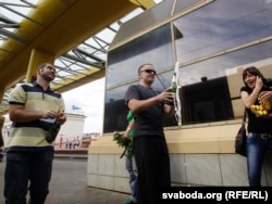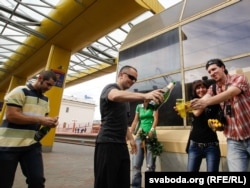 Зараз зь імі размаўляюць журналісты.