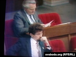 Так атрымалася, што у Авальнай залі я сядзеў побач з былым сакратаром ЦК КПБ (і будучым старшынём Канстытуцыйнага Суду) Валерыем Ціхінем. І менавіта Ціхіня быў тым самым адзіным дэпутатам, які націснуў кнопку, калі ішло галасаваньне “супраць”. З гэтай нагоды ў нас зь ім была тады даволі экспрэсіўная спрэчка (у парлямэнцкіх выразах, зразумела).