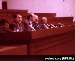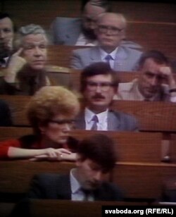 Саюзьнікамі тут у нас былі дэпутаты Дэмклюбу, некаторыя “незалежнікі” і дэпутаты-“перабежчыкі”. Усяго разам з намі – каля 80-85 асобаў. Гэта менш, чым адна траціна (усіх дэпутатаў – 345, зарэгістравалася на сэсіі– 267). За астатнія галасы, волю і сьвядомасьць дэпутатаў трэба было змагацца.