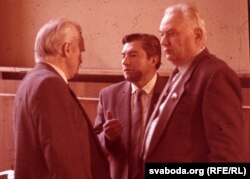 У адным зь перапынкаў Кебіч падыходзіць да мяне, дае аркуш паперы з тэкстам і кажа: “Вось паглядзіце, можа, якія заўвагі будуць. Зьбіраемся прапанаваць Вярхоўнаму Савету”. Гэта быў праект пастановы Вярхоўнага Савету, падрыхтаванай Саўмінам, “Аб забесьпячэньні палітычнай і эканамічнай самастойнасьці Беларускай ССР”.