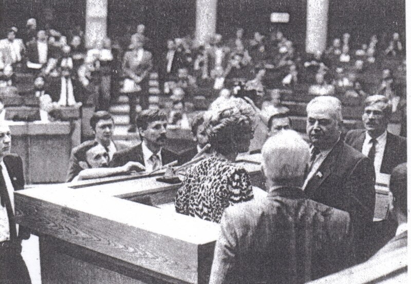 Вось тут у намэнклятуры адбыўся яшчэ адзін істотны надлом. Іхняга, такога недатыкальнага, важнага вярхоўнага начальніка пагналі з трыбуны, як цюцьку ці як бамжа, і ён патаптаў на сваё месца. Увесь аўтарытэт і вага яго тут жа зьнізіліся ў гэтай сытуацыі ў іхных вачах амаль да нуля. Яны ўбачылі, што ніякай абароны і ніякага заступніцтва ня будзе. (Дарэчы, калі б мы бесьперашкодна дапусьцілі выступ у Вярхоўным Савеце вярхоўнага начальніка намэнклятуры, які абвінавачваецца ў галоўным злачынстве, то, не сумняваюся, вельмі ўскладнілі б сабе далейшую барацьбу на сэсіі. Намэнклятура, адчуўшы падпорку, магла б пачаць больш актыўна і неразважна ўсёй сваёй масай супраціўляцца.)