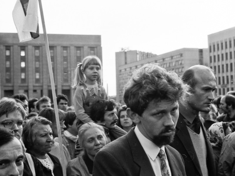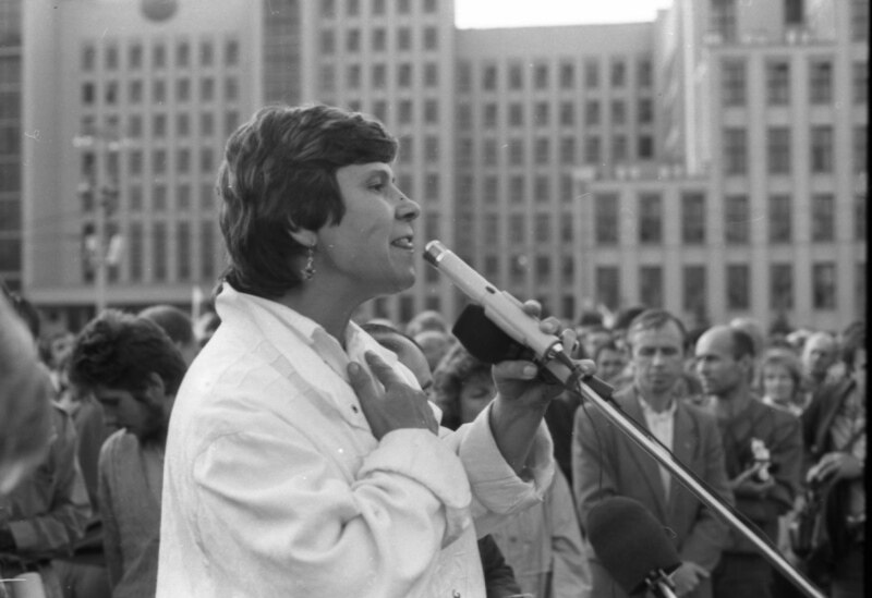Праз дваццаць гадоў мне перадалі некалькі сотняў здымкаў з архіву Уладзімера Кармілкіна, на якіх зафіксаваныя тыя жнівеньскія дні і нашыя мітынгі. І толькі на адным Кармілкін "падлавіў" момант, дзе ў нас з Пазьняком нейкі "не баявы" настрой. Але гэта падманлівае ўяўленьне: насамрэч настрой быў самы рашучы, можа быць, проста на некалькі сэкундаў выявілася стомленасьць – у тыя дні мы сапраўды недасыпалі. На астатніх здымках – усе выглядаем бадзёра.
