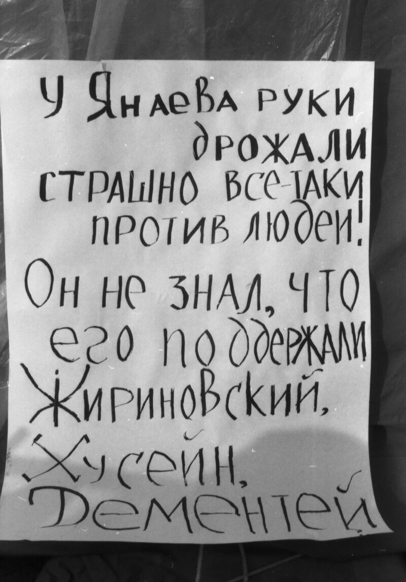 Ёсьць унікальны відэазапіс – у тыя дні Алесь Лукашук і Юры Гарулёў здымалі фільм пра дэпутатаў Вярхоўнага Свету, і кінаапэратар быў у памяшканьні апазыцыі. Ён і засьняў, як дэпутаты БНФ выйшлі на плошчу (на відэа зафіксаваны таксама моманты працы над дакумэнтамі да сэсіі Вярхоўнага Савету, якая абвясьціла Незалежнасьць – гэта адзіныя і ўнікальныя здымкі, больш у памяшканьні Апазыцыі БНФ у тыя жнівеньскія дні ніхто не здымаў).