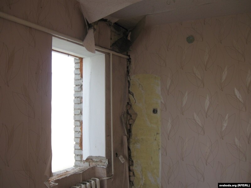Тры гады ўжо. Нам тую хату далі ў 78-м годзе. Будаваў нябожчык Найман такі. Павінны былі пакласьці тры маналітныя паясы. Наш дом пабудаваны проста так. Безь ніякіх маналітных паясоў. Мне, як уладальніку гэтага дома, нічога не сказалі. І ў 2001-м годзе па нашым доме пайшлі трэшчынкі невялічкія. А я зрабіў эўрарамонт. І ў адзін цудоўны дзень сьпім. Пятніца была, як сёньня помню. Такі грукат — ух! Мы аж страсянуліся. Усталі, паглядзелі. І з таго дня ўсё рухацца пайшло. А мы ж аформілі. Нам прадалі. Калі ведалі цудоўна, што такі дом, навошта было?..