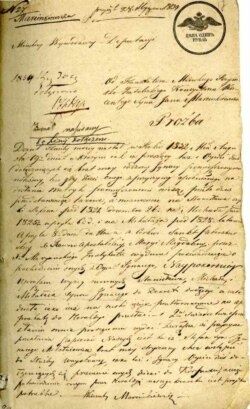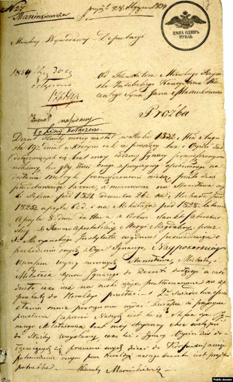 Прашэнне В. Дуніна-Марцінкевіча ў Мінскі дваранскі дэпутацкі сход аб пацвярджэнні яго дваранскага паходжання. 28 студзеня 1834