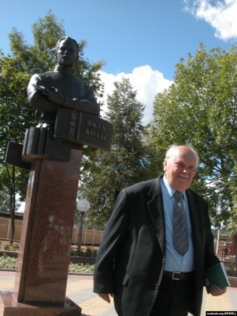 Тым самым днём у Ганцавічах адкрывалі яшчэ адзін помнік – Якубу Коласу, які ў маладосьці настаўнічаў у недалёкім Люсіне. І тут ужо чыноўнікі ня боязь сваю паказалі, а непрыхаванае хамства. Прысутнаму на ўрачыстасьці сыну народнага песьняра Міхасю Канстанцінавічу Міцкевічу не далі слова. Інтэлігентны і стрыманы чалавек, ён ня стаў тое слова прасіць ці патрабаваць. З-пад гарачаватага па-летняму сонца сышоў у цянёк, пад дрэвы, дзе мы зь ім і пагутарылі.