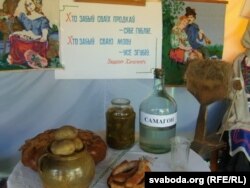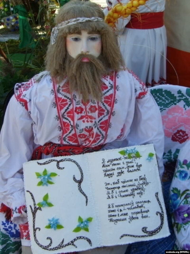 Сьвяда духу ператварылася ў сьвята жывата. Рэстаранная разьвясёлая атмасфэра лунала над бясконцымі прылаўкамі, якія ламаліся ад розных прысмакаў. Сям-там, праўда, трапляліся і кнігі. З пап’е-машэ, бутафорскія. Бутафорскімі аказаліся і ёмістыя бутлі з надпісам “Самагон”, якія стаялі на бутафорскіх сталах, вакол якіх сядзелі бутафорскія беларусы ў вышываных строях.