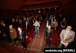 10.45 На прапанову Янукевіча дэлегаты ўшанавалі памяць беларускіх спартоўцаў, якія днямі загінулі ў авіякатастрофе ў Расеі.