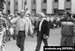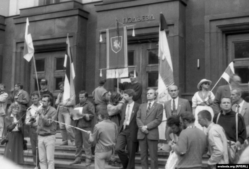 А было б тое, што, даведаўшыся пра штурм (ці аблогу, ня важна) будынка ЦК, 30-40 дэпутатаў Вярхоўнага Савета – сакратароў абкамаў і райкамаў па- просту б паўскоквалі з крэслаў і зьбеглі б з Авальнай залі, каб як найхутчэй дабрацца да сваіх партыйных кабінэтаў і ўратаваць тое, што яшчэ можна ўратаваць. Нам па-просту не хапіла б галасоў для наданьня Дэклярацыі аб дзяржаўным сувэрэнітэце статусу канстытуцыйнай сілы.