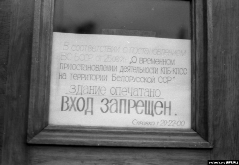 Мы ў Апазыцыі, аднак, былі далёкія ад эйфарыі і разумелі, што так проста камунізм не адыдзе. Яшчэ ў першы дзень надзвычайнай сэсіі, калі дзейнасьць кампартыі не была прыпыненая, я запатрабаваў апячатаць будынкі ЦК і КДБ (дзяржбясьпека лічылася “баявым атрадам партыі”). Тое ж выказалі і іншыя дэпутаты Апазыцыі БНФ і Дэмклюбу. Мэр Менску Герасіменка прыняў рашэньне аб апячатваньні гаркаму і райкамаў у Менску – актывісты Народнага Фронту разам з міліцыяй зрабілі гэта за пару гадзінаў.