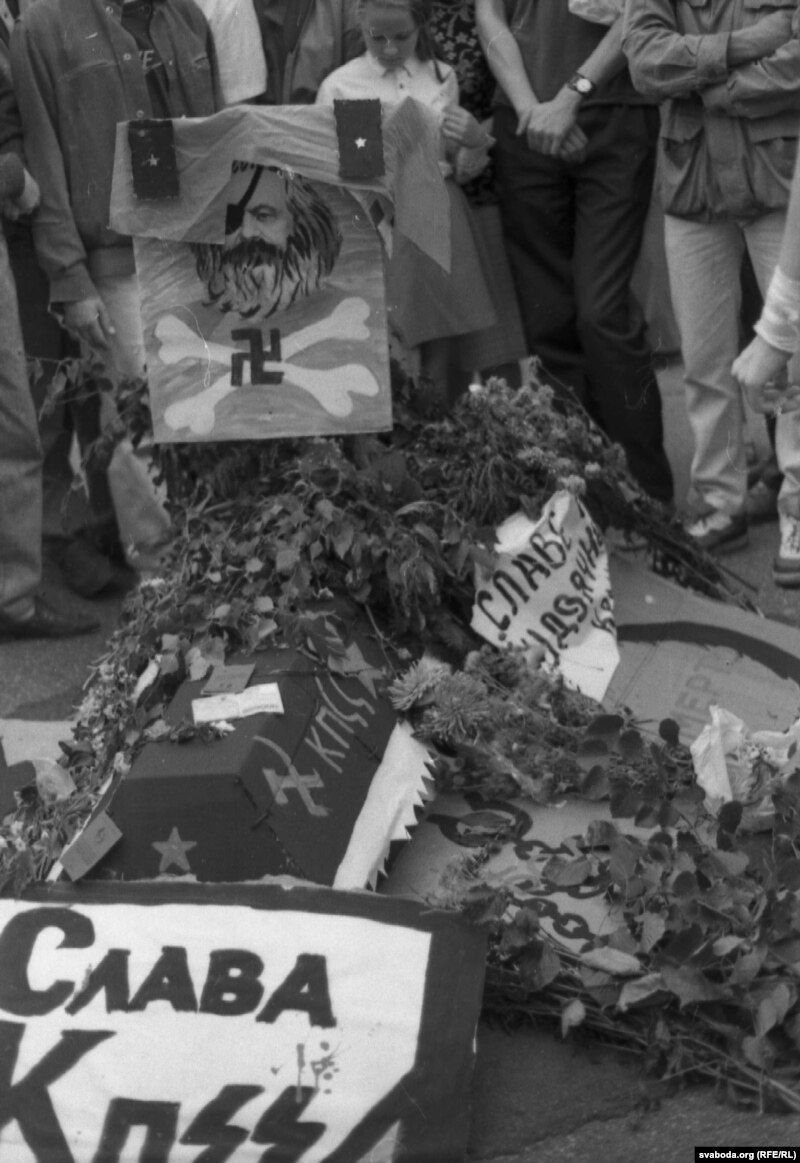 Потым некаторыя казалі, што занадта непрыгожа зрабілі ініцыятары таго “пахаваньня”. Думаю, непрыгожа было б іншае – калі б людзі фізычна расправіліся з партыйнымі работнікамі (напрыклад, павесілі іх на слупах), палілі той жа ЦК, абкамы і райкамы. Аднак разьвітаньне з камунізмам увасобілася ў гумарыстычную, тэатралізаваную, карнавальную форму. Гэтае пахавальнае шэсьце ні дэпутаты Апазыцыі БНФ, ні Сойм Народнага Фронту не арганізоўвалі – яно было народнай ініцыятывай. Філёзаф Міхаіл Бахцін пісаў пра карнавал як пра відовішчную частку частку культуры рэнэсансу, якое яшчэ мае назоў – Адраджэньня. У Менску ў тыя дні людзі хавалі “Славу КПСС”, сьмяяліся над мінулым – і верылі, што з адыходам камунізму надыдзе лепшы час.