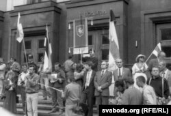 Мітынг ля цэнтральнага ўваходу ў будынак былога ЦК КПБ. Жнівень 1991 г.
