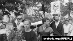 Тая труна была прынесеная да будынку ЦК з плошчы Леніна, ад Дому ўраду, і пранесеная праз увесь Ленінскі праспэкт – натуральна, без усялякай санкцыі ўладаў. Мы зь Зянонам Пазьняком, Сяргеем Антончыкам ды Лявонам Баршчэўскім прыехалі да ЦК, калі там ужо ішоў мітынг.