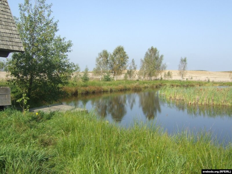 Праходзім пару-сотню мэтраў да невялікай дрыгвяной сажалкі, паабапал зарослай расьлінамі, за якімі яўна наглядаюць, каб азярцо не зарасло. Дыхаецца лёгка — вакол палеткі, аж пад небакрай.