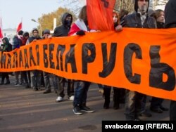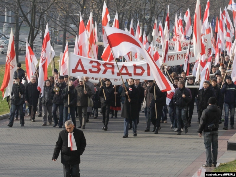 11:30 Удзельнікі акцыі, ідучы па праспэкце Незалежнасьці, працягваюць скандаваць «Свабоду палітвязьням!». Супрацоўнікі спэцслужбаў у цывільным іх не чапаюць. У калёне ідуць былыя палітвязьні Васіль Парфянкоў і Павал Вінаградаў, палітык Вінцук Вячорка, былы кандыдат на прэзыдэнта Віталь Рымашэўскі.