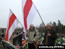 Сябры былога старшыні віцебскай суполкі КХП БНФ Уладзімера Плешчанкі адведалі ягоную магілу — як і штогод на Дзяды, зь бел-чырвона-белымі сьцягамі.