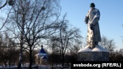 — Гэта помнік Аляксандру. Ён стаяў тут на павароце. Дзе салдат стаіць. У 35-м пагрузілі на вагонкі і па рэйках штурхалі. Месца неяк няўдала займаў. Дарога ішла па адзін бок ад яго і па другі. А гэта ж была дарога слуцкая. Корчмы стаялі па дарозе. Чалавек мог пераначаваць. Шлях быў.