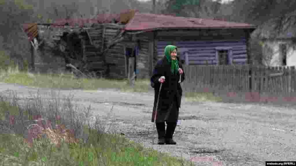 Іван Шамянок на сваім падворку. Самы старэйшы жыхар вёскі, ягоная жонка памерла 10 гадоў таму. Летась дзед Іван пахаваў свайго брата, які таксама тут жыў