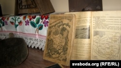 Дзе сярод ручнікоў і калаўротаў маю ўвагу прыцягнулі даваенныя польскія падручнікі геаграфіі. З мапамі Польшчы ад мора да мора.