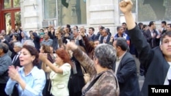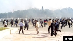 Як і апанэнты Лукашэнкі ў 2010-м, у 2003 годзе азэрбайджанская апазыцыя не прызнала вынікі выбараў, і на наступны дзень пасьля іх каля 5 тысяч прыхільнікаў Ісы Гамбара, апазыцыйнага кандыдата ў прэзыдэнты ад партыі Мусават, рушылі па цэнтральных вуліцах сталіцы да плошчы Азадлыг. Улады накіравалі туды полк унутраных войскаў і спэцназ, якія яшчэ больш брутальна, чым у Менску, разагналі дэманстрацыю. У часе сутычак былі ахвяры.