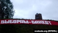 13:25 Ворша. Моладзевыя актывісты, прыхільнікі стварэньня партыі БХД, вывесілі на аршанскім гарадзішчы вылікі плякат "Выбарам-байкот!" Гэта месца ў самым цэнтры гораду, і плякат убачылі дзесяткі мінакоў.