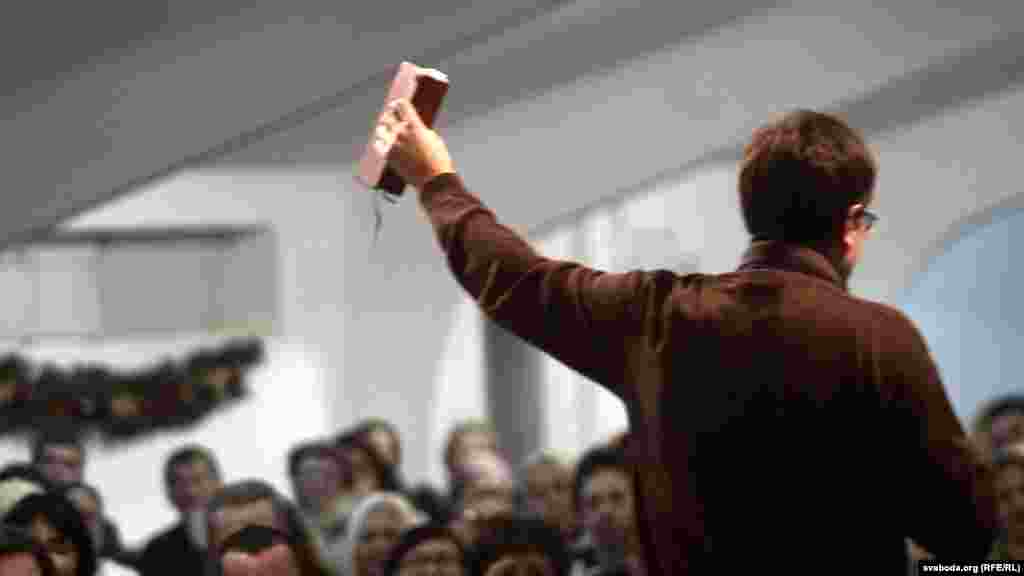 Адміністратар царквы ў часе малітвы паведамляе, што высяленьня ня будзе