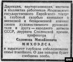 Тут, унізе, усё ішло паводле пляну. «Я, відаць, хутка памру», — сказаў Міхоэлс у той дзень менскім знаёмым. Сказаў, яшчэ ня ведаючы, што яму падрыхтаваная роля ахвяры ў іншым спэктаклі — спэцапэрацыі па ліквідацыі амэрыканскага шпіёна Міхоэлса, то бок яго самога. Кіраваў апэрацыяй генэрал МГБ Агальцоў. 12 студзеня ўвечары Міхоэлса і літаратара Голубава, які быў няштатным агентам МГБ, не падазраючы, які канец яму падрыхтаваны, завезьлі на дачу Цанавы ў Сьцяпянцы і раздушылі там коламі грузавіка. А потым выкінулі трупы на вуліцы Беларускай, недалёка ад гатэлю.