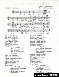 Аляксандар Увядзенскі. Лягерная песьня /Пераклад Анатоля Зіміёнкі/. Іскры Ільіча. 1935. № 7