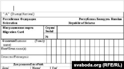 На падлёце да Масквы стуардэсы прапанавалі замежнікам так званую міграцыйную карту. Рутынная рэч — такія блянкі для замежнікаў (нават для тых, каму віза не патрэбная) прадугледжаныя шмат у якіх краінах. У Чэхіі, Францыі ці Італіі іх няма, а вось у Вялікай Брытаніі ці ЗША яны ёсьць.