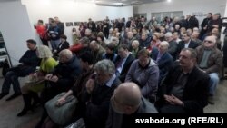 17:55 Засталіся апошнія хвіліны да пачатку прэзэнтацыі кнігі Валера Каліноўскага «Справа Бяляцкага». Заля галерэі «Ў» напаўняецца людзьмі.
