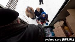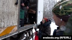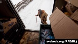 Машына з харчамі пад’яжджае ад лесу. Ісьці сюды ад хаты Марфы і Віктара — мэтраў 800, па глыбокім сьнезе дарога займае хвілін 15.