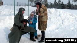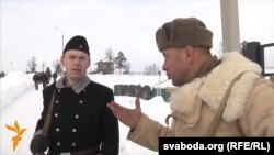 Якая асалода назіраць за двума сябрукамі, адзін зь якіх апрануты ў кажух савецкага афіцэра, а другі — у форму жаўнера Беларускай Краёвай Абароны.