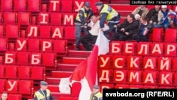 Розьніцу паміж дзяржаўнай і хакейнай уладай у Менску заўважыць цяжка, рэжым ня хоча бачыць няправільны сьцяг на трыбунах падчас тэлетрансьляцыяў матчаў з Швэцыі.
